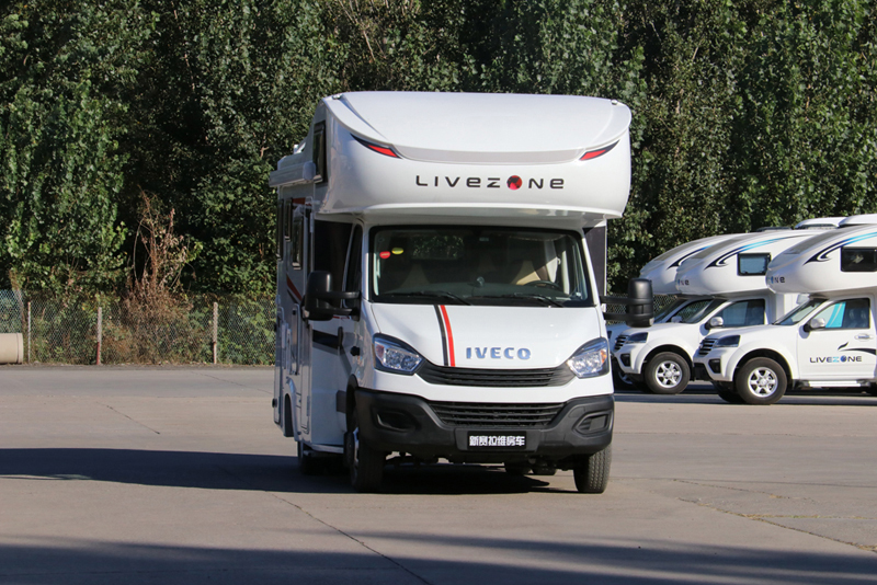 拓展后的后双人床尺寸达到了1900*1400,加上车顶的额头双人床2270*1620*630,同时中间的会客区沙发可拼接成床,整个房车内妥妥的睡五个人,车顶的可调色氛围灯以及吊顶,居家感十足。