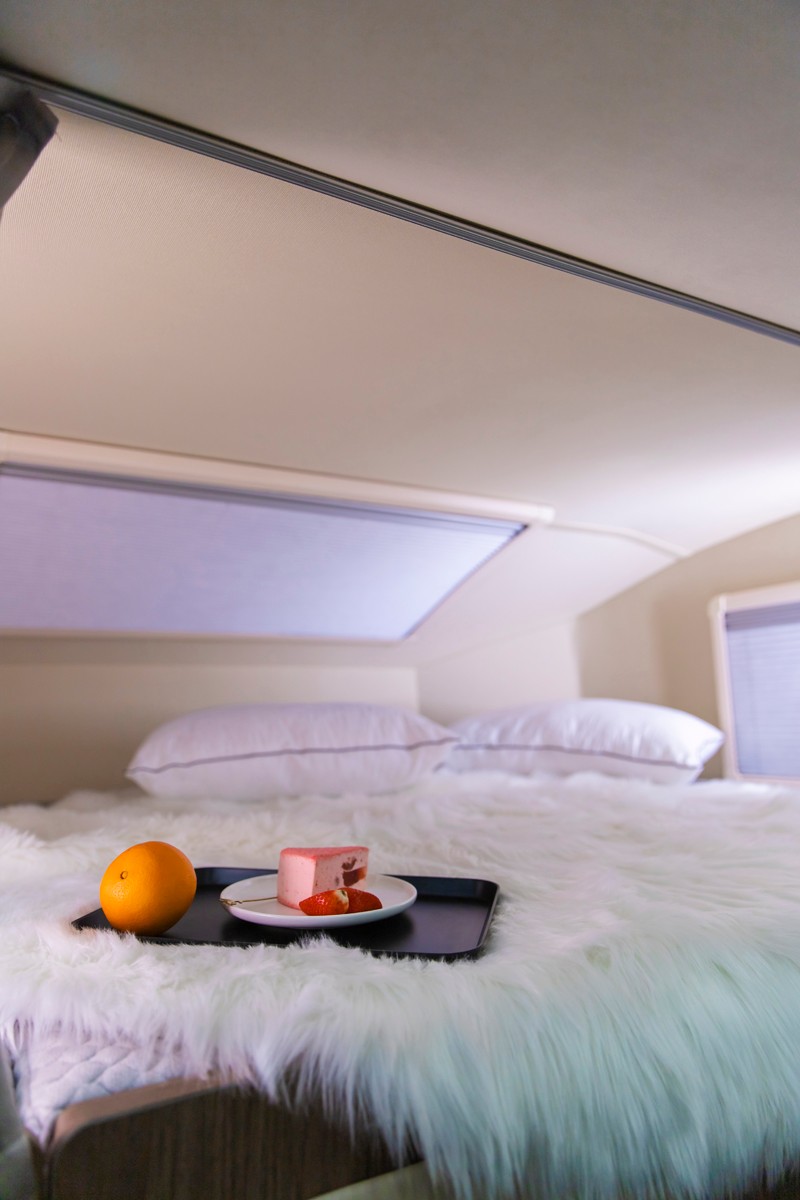 放下电视,前部额头就是一张超大的双人床,2280*1620mm,休息2-3人还是没有问题的。